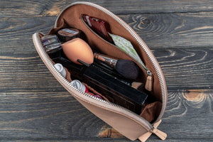 Keep your cosmetic organized with aHandmade Leather Lunar Makeup / Toiletry Bag. This makeup bag is perfect for storing all your cosmetics and everday accessories. Say goodbye to the cheap makeup bags that do nothing to protect or secure your precious items. Features include an internal elastic large pouch , 2 narrow elastic pouches and one zippered pocket.