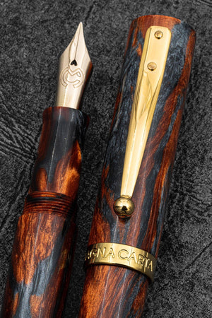 2014 yılında kurulan Magna Carta, Hindistan'ın önde gelen dolma kalem üreticisidir. Dolma kalem, uç ve reçinelerin kendi bünyesinde üretiminde uzmanlaşan Magna Carta, kalem koleksiyoncuları ve meraklıları için yüksek standartları korumanın gururunu yaşıyor. 2023 yılında iki yeni amiral gemisi modeli tanıtıldı: MAG1000 ve MAG600. MAG1000, modele özel 10 numaralı uca sahiptir ve bu da onu Magna Carta'nın bugüne kadarki en büyük kalemi yapar ve boyut olarak Namiki İmparatoru'nu bile geride bırakır. MAG600, vintage esnek altın uçlu kalemleri anımsatan #6 14K tam esnek uca ve ebonit damağa sahiptir.