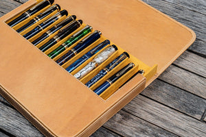 El Yapımı Deri Magnum Opus 12 Yuvalı Sert Kalem Kutusu