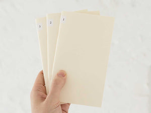 Midori MD Notebook Light B6 Slim Kareli 3'lü Set, her biri 48 kareli sayfa içeren ve zımba ciltleme yöntemiyle tutturulmuş üç defterden oluşur. Midori tarafından daha küçük projeler için tasarlanan bu ince defterler, yanınızda taşımak için idealdir ve eğitim, saha araştırmaları gibi birçok alanda kullanım için mükemmeldir.