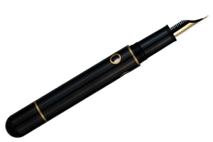 Başlıkta da yazdığım gibi minimalist bir tasarımı var. Yuvarlak mürekkep penceleri, sade klipsi ve piston halkası ile ebonit malzemenin birleşimi son derece şık.