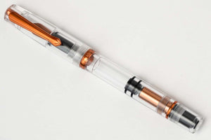The Original: Summer kanıtlanmış popülerOriginal: Spring. izinden gidiyor. Şeffaf akrilikten yapılmış olup, kalemin tek renkli parçaları klips, halka, piston ve uçtur. Bu bileşenler parlak bakır rengine kaplanmıştır. Her zamanki gibi,Original: Summer, firmamızın ürettiği paslanmaz çelik uçları kullanır ve bu demonstrator dolum sisteminin tamamını görebileceğiniz bir yapıya sahiptir.