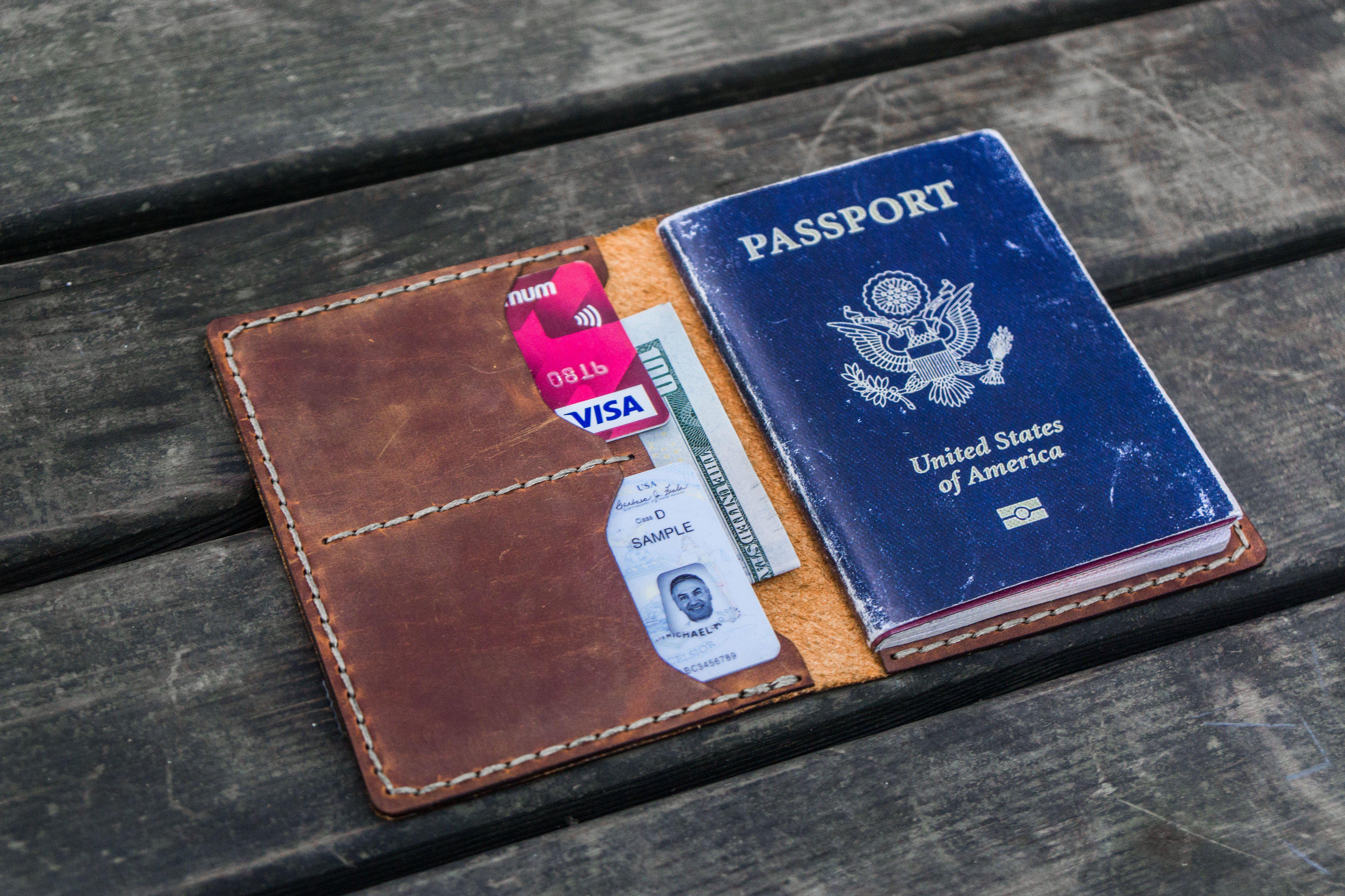 Seyahatlerinizde en önemli belgelerinizden biri olan pasaportunuzu şık ve güvenli bir şekilde taşıyın. El yapımı deri pasaport kılıfımız, yıllanmış yüksek kaliteli deriden üretilmiştir. İç kısmında pasaport için bir kaydırmalı cep, para veya makbuzlar için tam boy bir cep ve iki adet kimlik/kredi kartı yuvası bulunur.