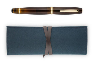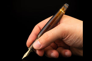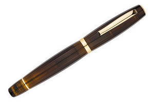 İtalya'da el yapımı olarak üretilen SCRIBO FEEL dolma kalemi, çokgen, on iki yüzlü bir gövde ve kapağa sahiptir. Amber kahverengi reçine gövde, altın kaplama süslemelerle tamamlanmıştır ve dahili piston mekanizması ile doldurulur. 14 ayar altın esnek uçlu ve ebonit beslemeli kendi üretimi bir uç ile donatılmıştır. Her kalem, gerçek deri ve pamuktan yapılmış uyumlu bir kalem kılıfı ile birlikte gelir.