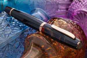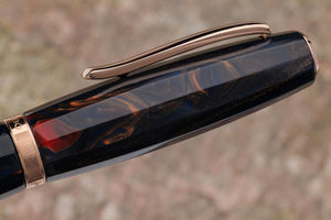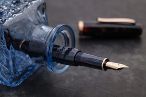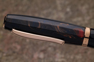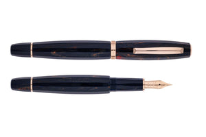 FEEL Blu Califfo ise daha derin, daha dingin bir ruh haliyle geliyor. Mavi, mor ve açık turuncunun iç içe geçtiği bu özel reçine, yazmaya ve düşünmeye davet ediyor. Bu zarif gövdeyi bu kez iki farklı detayla sunduk: klasik bir duruş için rutenyum ve ilk kez kullandığımız rose altın kaplama ile daha sıcak, daha zarif bir dokunuş...