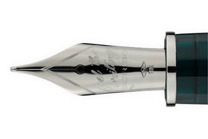 Bu tarihi uç için en mükemmel eşleşme, şüphesiz, klasik piston dolum sisteminin kullanımı sayesinde her zaman hazır, cömert, yumuşak ve hassas yazımı geliştiren ebonit besleyicidir.