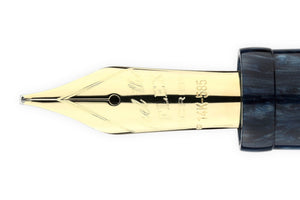 İtalya'da el yapımı olan SCRIBO PIUMA dolma kalem, dikişsiz bir gövde ve kapağa sahiptir. Taş benzeri mavi reçine gövde, sarı altın süslemeyle tamamlanır ve bir kartuş/dönüştürücü (dahildir) ile doldurulur. 14 ayar altından yapılmış, şirket içi bir uçla donatılmıştır. Esnek boyutlar veya 18 ayar altın standart boyutlar, ebonit beslemeli. Her kalem, hakiki deri ve pamuktan yapılmış eşleşen bir kalem kılıfıyla birlikte gelir.