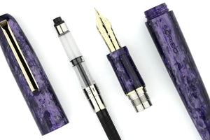 İtalya'da el yapımı olan SCRIBO PIUMA dolma kalem, dikişsiz bir gövde ve kapağa sahiptir. Taş benzeri mor reçine gövde, sarı altın süslemeyle tamamlanır ve bir kartuş/dönüştürücü (dahildir) ile doldurulur. 14 ayar altından yapılmış, şirket içi bir uçla donatılmıştır. Esnek boyutlar veya 18 ayar altın standart boyutlar, ebonit beslemeli. Her kalem, hakiki deri ve pamuktan yapılmış eşleşen bir kalem kılıfıyla birlikte gelir.