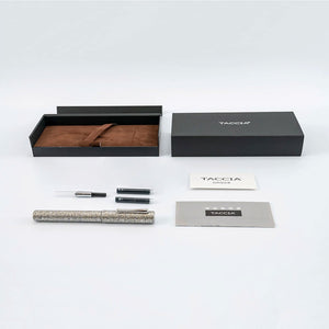 Açıklama: Taccia Granit Taş Dolma Kalem - Beyaz CT, rafine işçiliğin ve olağanüstü yazma deneyiminin özünü temsil eder.Granit kayanın karmaşık yapısından ilham alan bu kalem, Japon tasarım sanatına ve doğal unsurların kalıcı güzelliğine bir övgü niteliğindedir.