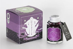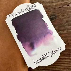 Teranishi Guitar Taisho Roman Haikara Fountain Pen Ink - Innocent Mauve. Innocent Mauve is the color of the mallow flower, and calls to the gentle joys of playful fantasies.