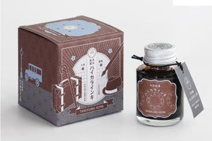 Teranishi Guitar Taisho Roman Haikara Fountain Pen Ink - Traveling Sepia. This brown reminds us of a wandering spirit who craves exploring an unknown world, far beyond their own.