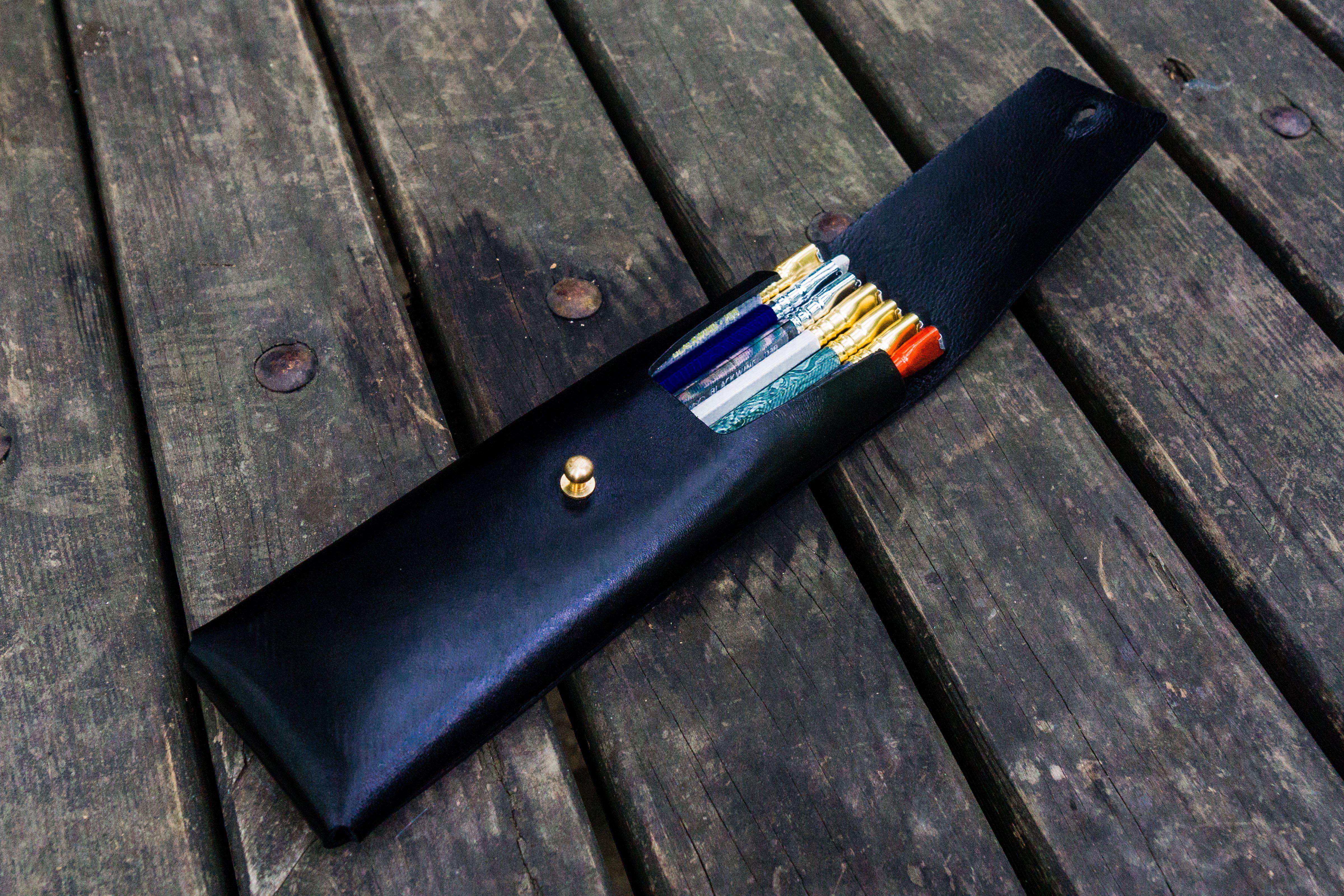 Leather Charcoal pencil case ideal to store pens and pencils, small tools or art supplies. A piece of leather wraps around the pen fluffy, it is a basic and useful Design pen case.
