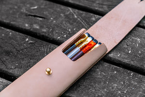 Leather Charcoal pencil case ideal to store pens and pencils, small tools or art supplies. A piece of leather wraps around the pen fluffy, it is a basic and useful Design pen case.