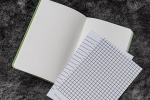 Defterlerimizin sayfalarının çizgisiz olması gözünüzü korkutmasın, içerisinde 2 adet çizgili ve 2 adet kareli olmak üzere toplam dört şablon bulundurur ve Tomoe River kağıdın özelliği neticesinde bu şablonları kolayca kullanmaya imkan tanır.