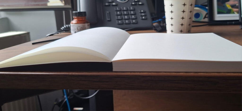 Defterde kullanılan kağıt, aşırı kalın değil (çok da ince sayılmaz). Divit uçları (1 mm. broad edge) ve kaligrafi mürekkepleri (Daler-Rowney, Winsor&Newton vb) ile textura quadrata gibi yoğun mürekkep seren bir yazı biçimi için kullanıyorum. Kabul edilebilir bir gölgeleme oluyor. Sayfanın arkası kullanılabilir vaziyette. Kanama, tüylenme gibi sorunlar yok. Kağıdın üzerinde belli ki sizing (ince bir kaplama) uygulanmış. Defter, yazarken 180 derece açılabiliyor. Düz sayfalı opsiyonunda kağıdın arkasına şablon çizgileri koyulursa, rahat görülebiliyor. Gayet iyi shading (hareleme) gösteriyor, sheen (revnak) konusunda Tomoe River kadar başarılı olduğunu sanmıyorum çünkü daha kısa bir kuruma süresi var. Yoğun ve bol kaligrafi mürekkebi kullanıcısı olarak kuruma sürelerinin ortalama olduğunu söyleyebilirim. Bu nedenle bir miktar sheen (revnak) ve belirgin shading (hareleme) alabiliyorum.Normalde karton kapaklı defterlere mesafeliyimdir ama bu defterin kapağındaki renk seçimi ve tasarım dili bana nostaljik geldi. Kağıdını, Galen'in deneme için sunduğu dokuz ayrı kağıt tipini deneyerek seçtim. Diğer kağıtların mutlaka bir noktada kuvvetli, bir noktada tamamen işlevsiz olduğu durumlarla karşılaştım. Bu kağıt bana orta noktada güzel bir denge yakalamış hissi verdi. Tavsiye edebileceğim bir defter. Bence online alışveriş yerine gidip yerinde görün, kağıtların tümünü kendi kaleminiz ve mürekkebinizle deneyin, Galen'in güzel atmosferini yaşayın, ürünlerin arasında kaybolun, öyle seçiminizi yapın.